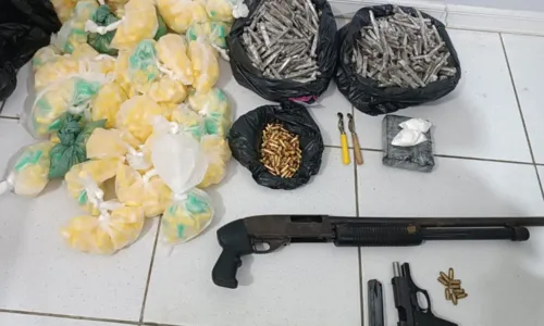 O carro, modelo Renaut Kwed, foi interceptado e durante a abordagem foram encontrados uma espingarda calibre 12, uma pistola calibre 380, 100 munições calibre 9mm, 9 munições calibre 380, 1400 pinos de cocaína, um tablete de cocaína com 560g e 627 charutos de maconha.